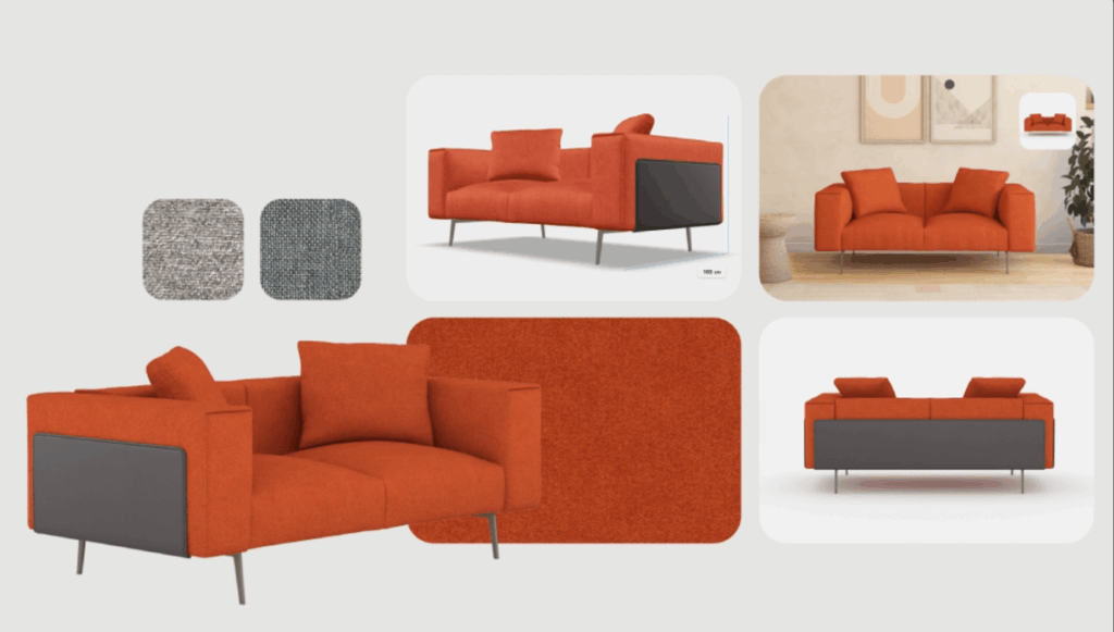After these 3D rendered assets are created, we integrate them with your brand and add them to your website, with every unique configuration having its own URL link. This is very beneficial for SEO, since every one of your assets such as colour, fabric, finishes and textures can be indexable for search engines – giving your products more opportunity for discovery.